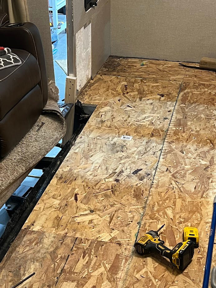 Keystone Montana Fifth Wheel — Living Area Subfloor Repair & Vinyl Flooring Refit